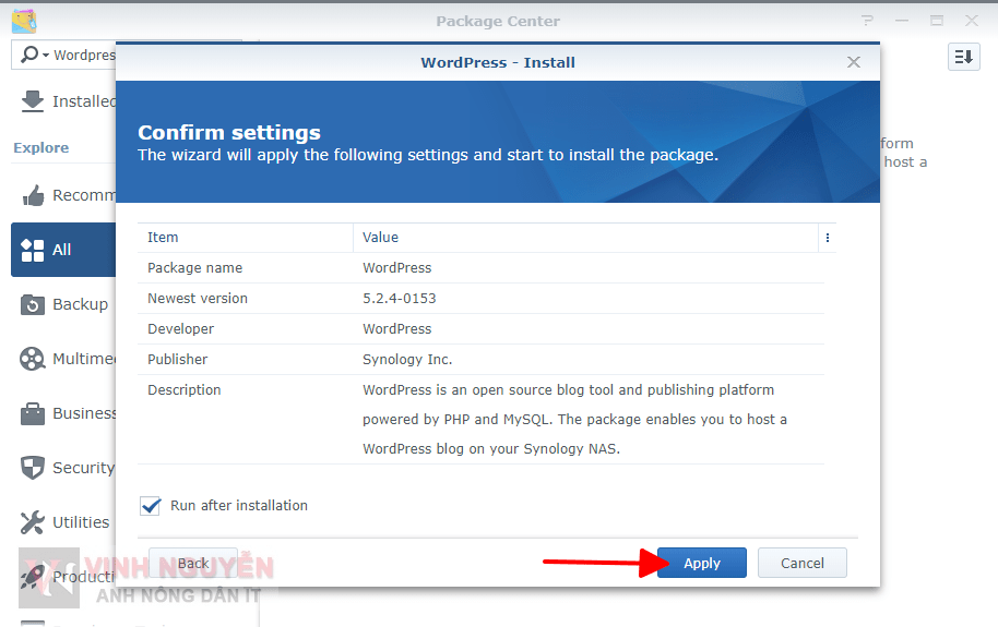 Trên thực tế nếu dùng Synology NAS làm máy chủ web thì không mấy ai dùng cách này. Như trang này của mình cũng không dùng theo cách này. Mình cài thủ công, tải mã nguồn về rồi tự cấu hình để cài