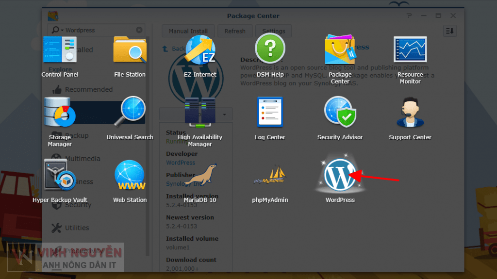 Bạn vào Package Center tìm kiếm cới từ khóa WordPress.