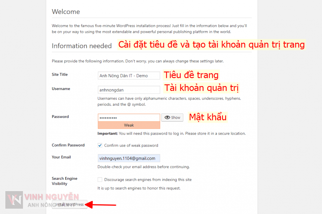 B2: Cài đặt WordPress