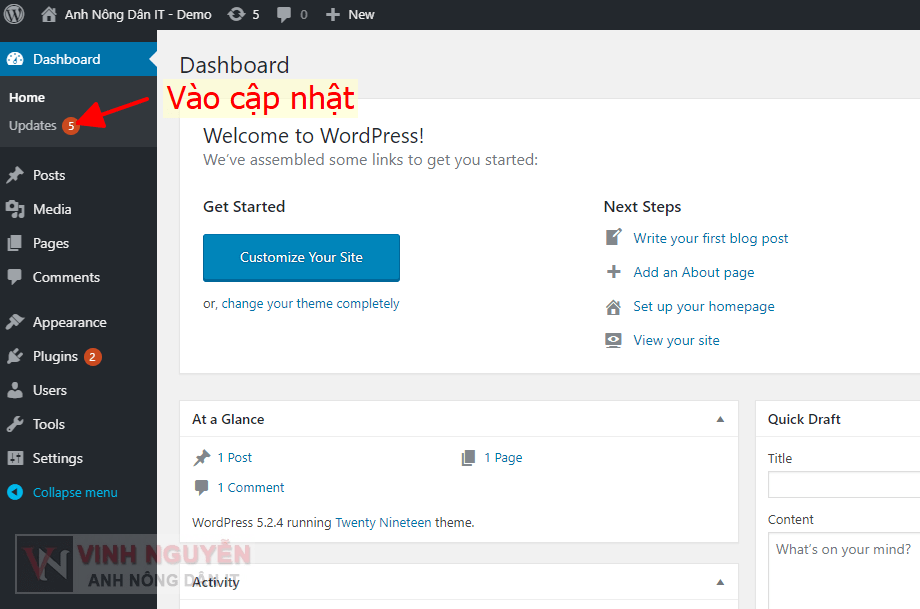 Chỉ cập nhật được Plugins và Theme