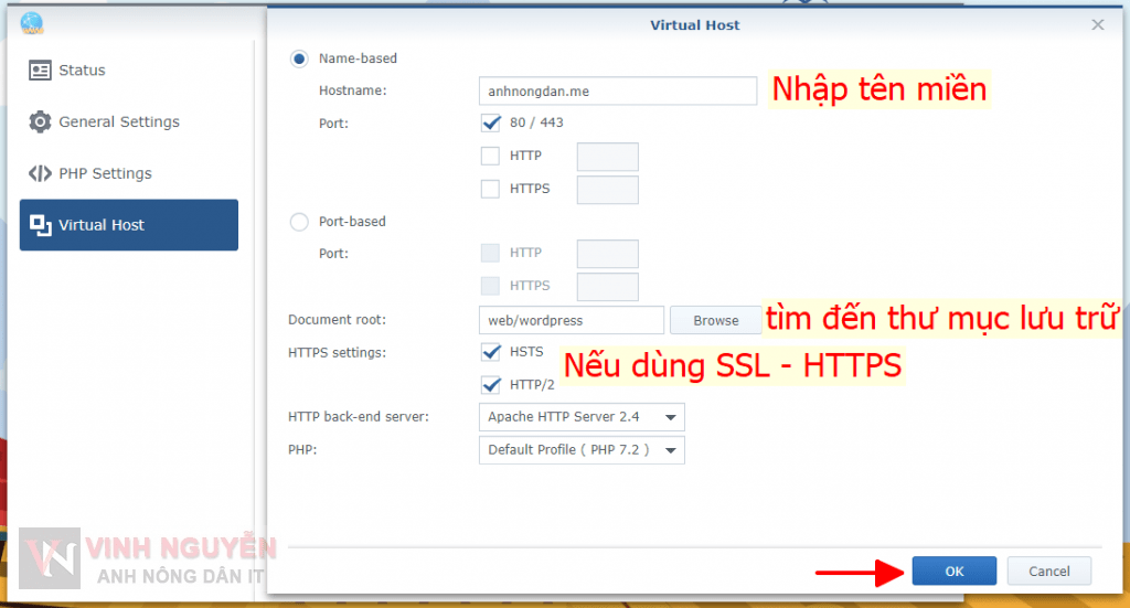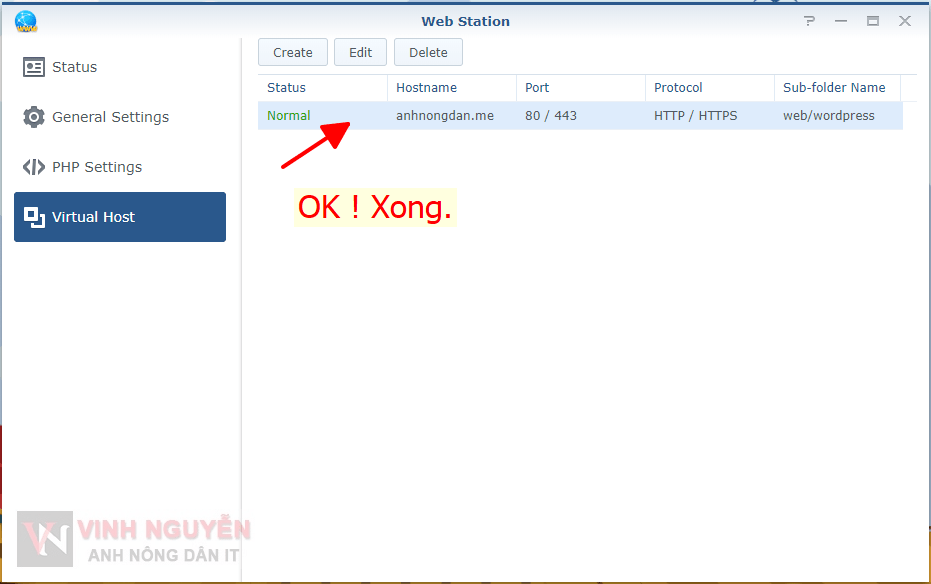 - Tạo Virtual Host trong Web Station.