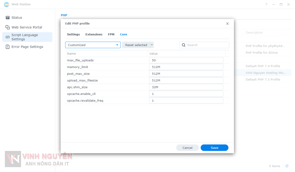 Mình đang rà lại các bài viết để update hướng dẫn cho DSM 7 mới ngỡ rằng chưa có bài viết chia sẻ về cấu hình PHP sao cho ngon nhất để chạy một trang WordPress trên Synology NAS hoặc thiết bị chạy XPEnology. Oke!!! Note này mình sẽ chia sẻ cấu hình PHP 7.4 (phiên bản mới nhất mà Synology NAS hỗ trợ tại thời điểm này) mình đang dùng để chạy trang Note này của mình 😀
