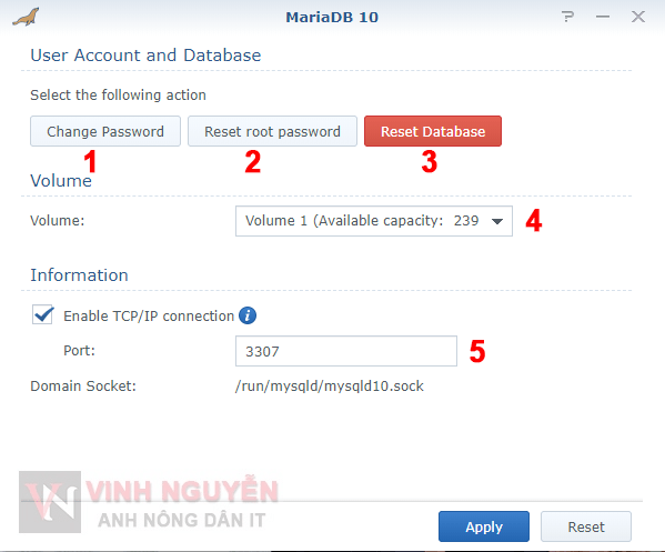 • (5) Cổng của MariaDB – mặc định 3307.
