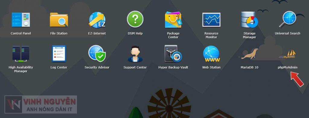 Vào Main Menu => phpMyAdmin hoặc truy cập địa chỉ ip-nas/phpMyAdmin