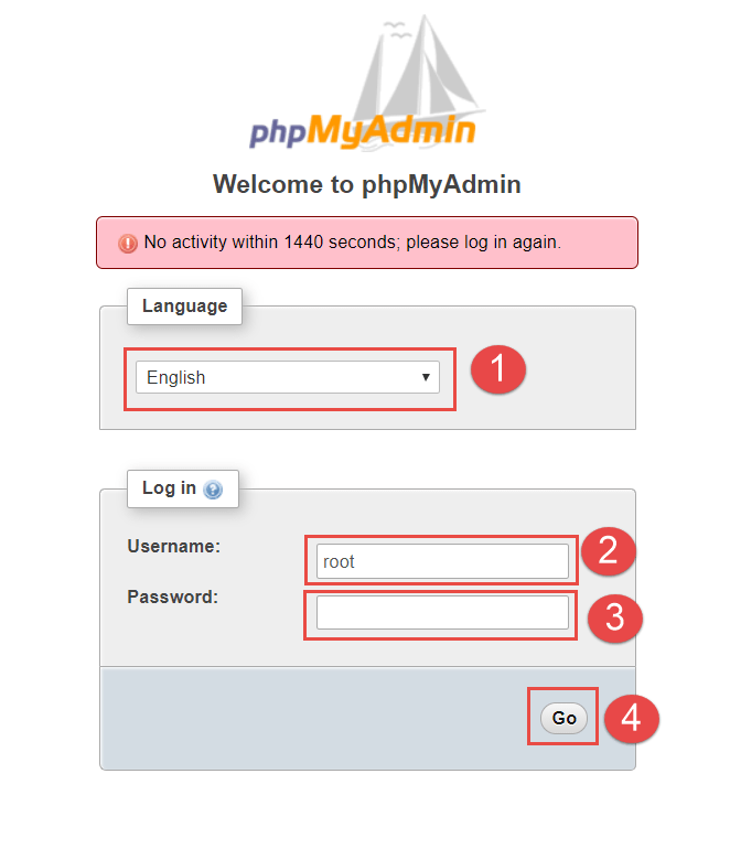 Chọn ngôn ngữ trong phpMyAdmin khi chưa đăng nhập
