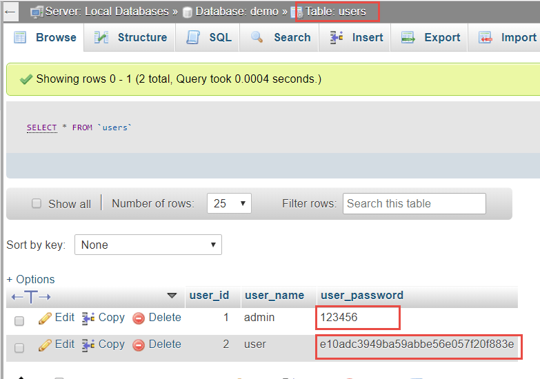 • Chú ý: nhờ có mã hóa dữ liệu mới bảo vệ được password của người dùng.