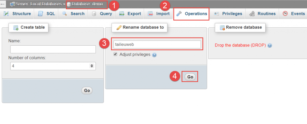 • (3) Nhập tên mới của database (ví dụ: tailieuweb).