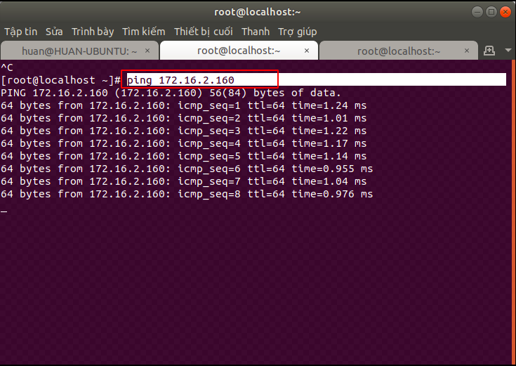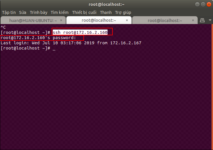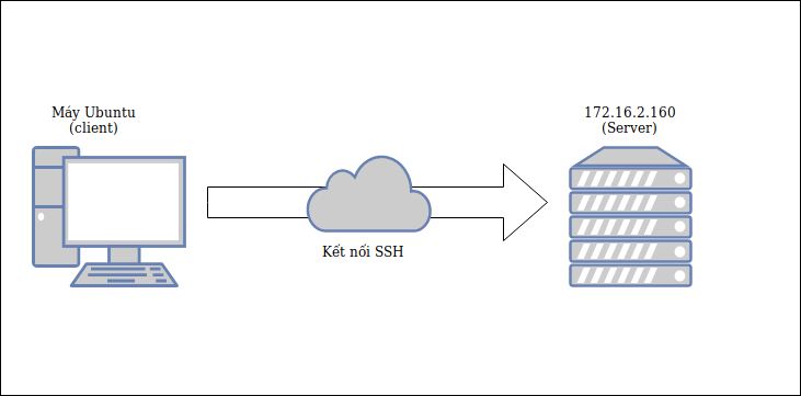 Trong bài này, mình sẽ sử dụng một máy khách dùng Ubuntu với user root để kết nối với máy chủ có địa chỉ là 172.16.2.160.