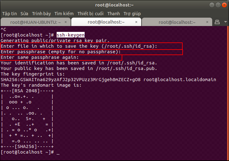 Bạn sẽ điền tên của file key. Thư mục lưu trữ file key đó là thư mục /root/.ssh/. Nếu bạn không nhập bất cứ gì, tên file sẽ mặc định là id_rsa.