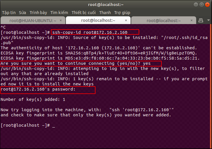 Nói chung bước này khá là nhiều bước tuy nhiên có một cách khá đơn giản để thực hiện một mớ các thao tác này đó là sử dụng tiện ích ssh-copy-id.