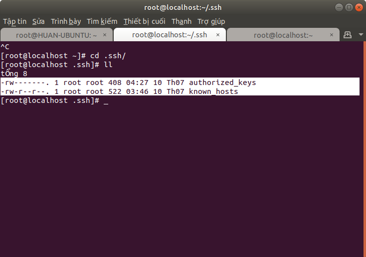 Bạn có thể thấy có 1 thư mục tên là .ssh được tạo ra được cấp quyền là 700 (ý nghĩa con số 700 xem ở đây).