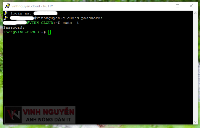 • Để vào được tài khoản root bạn dùng câu lệnh sau: sudo -i