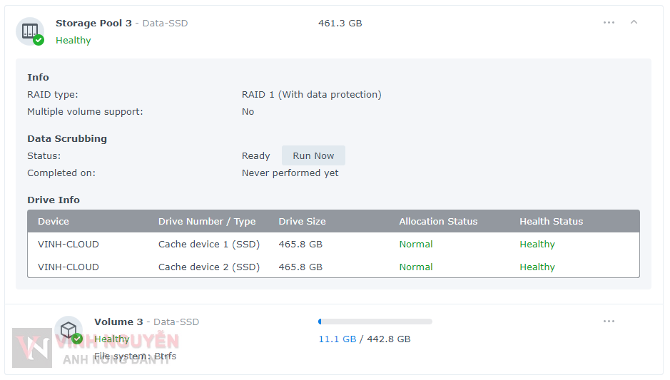 Với phân vùng này các nên lưu trữ những dữ liệu và ứng dụng cần truy xuất nhanh như Web Station. Nên thiết backup dữ liệu để tránh trường hợp xấu xảy ra.
