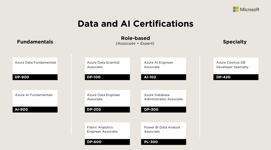 - Data và AI Certifications: Nhắm đến việc xử lý dữ liệu và triển khai trí tuệ nhân tạo.