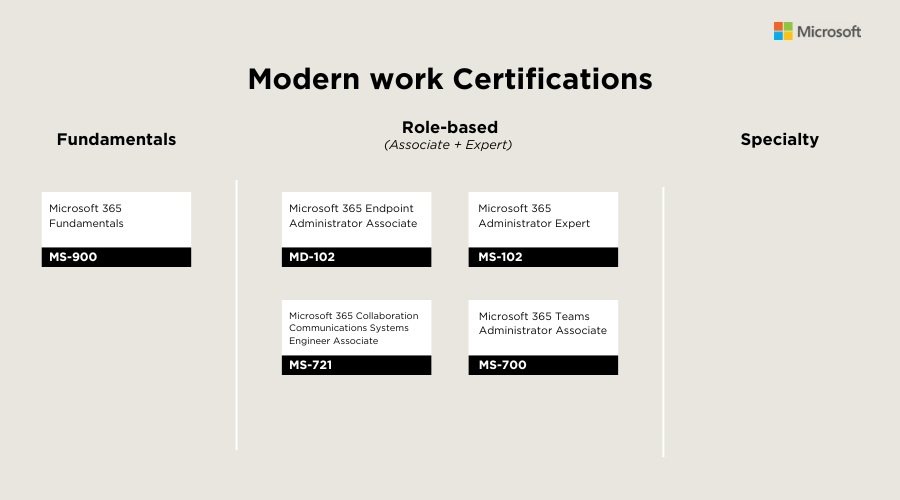 - Modern work Certifications: Các chỉ chỉ Microsoft về các kỹ năng làm việc hiện đại với các công cụ Microsoft 365.